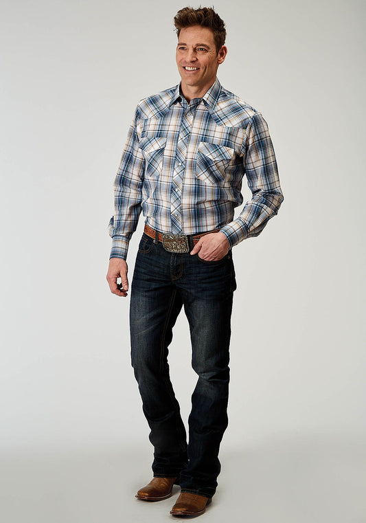 Roper Men's Long Sleeve Snap Ranch Plaid Western Shirt (03-001-0278-1052 BR)