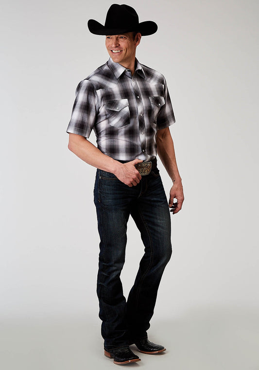 Roper Men's Short Sleeve Snap Black and White Plaid Western Shirt (01-002-0101-3005 BL)