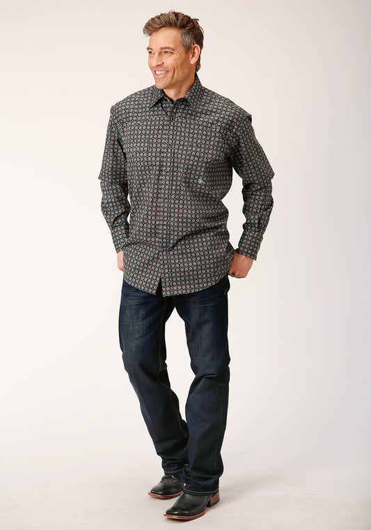 Roper Men's Long Sleeve Button Diamond Medallion Western Shirt (03-001-0325-1004 BR)