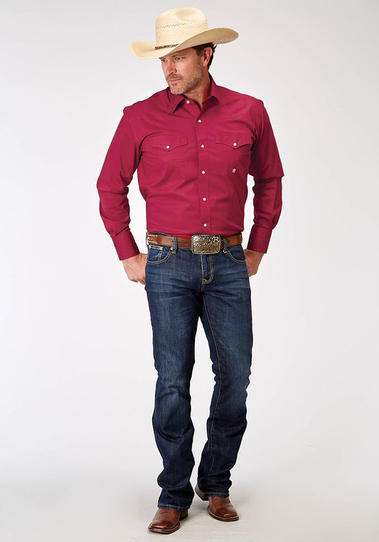 Roper Men's Long Sleeve Solid Poplin Stretch Red Western Shirt (03-001-0265-2107 RE)