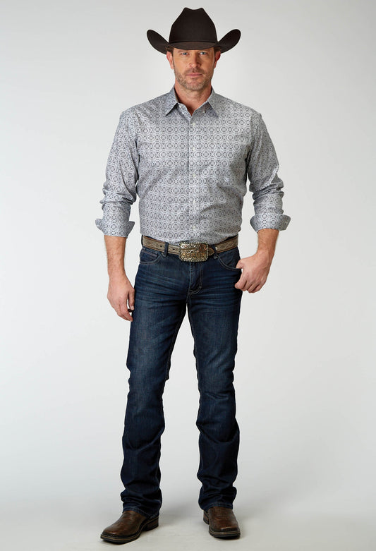 Roper Men's Long Sleeve Button Silver Medallion Western Shirt (03-001-0326-2026 GY)