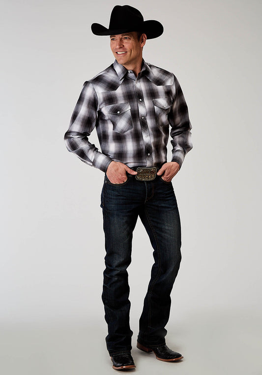 Roper Men's Long Sleeve Snap Black and White Plaid Western Shirt (01-001-0101-3005 BL)