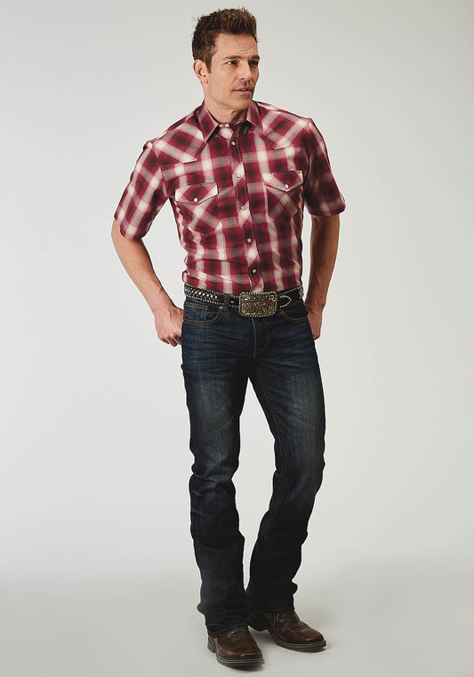 Roper Men's Short Sleeve Snap Red Plaid Western Shirt (01-002-0101-3007 RE)