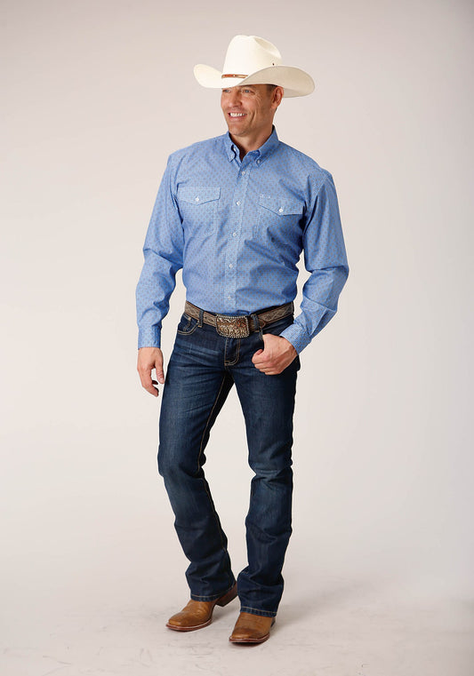Roper Men's Long Sleeve Button Azure Neat Western Shirt (03-001-0326-6006 BU)