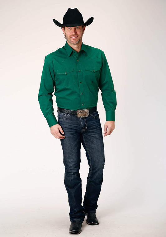 Roper Men's Long Sleeve Snap Black Fill Solid Green Western Shirt (03-001-0265-0184 GR)