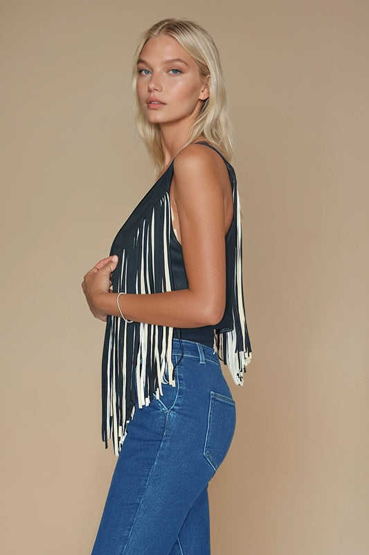 Wisteria Lane Women's Fringed Vest (W6408JIA - Black/Cream)