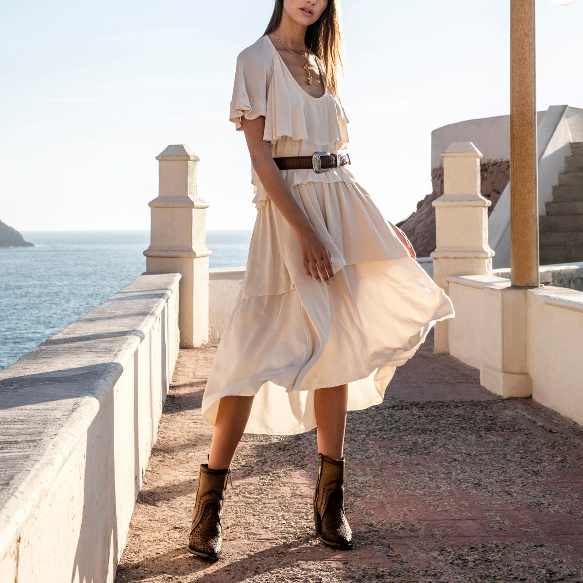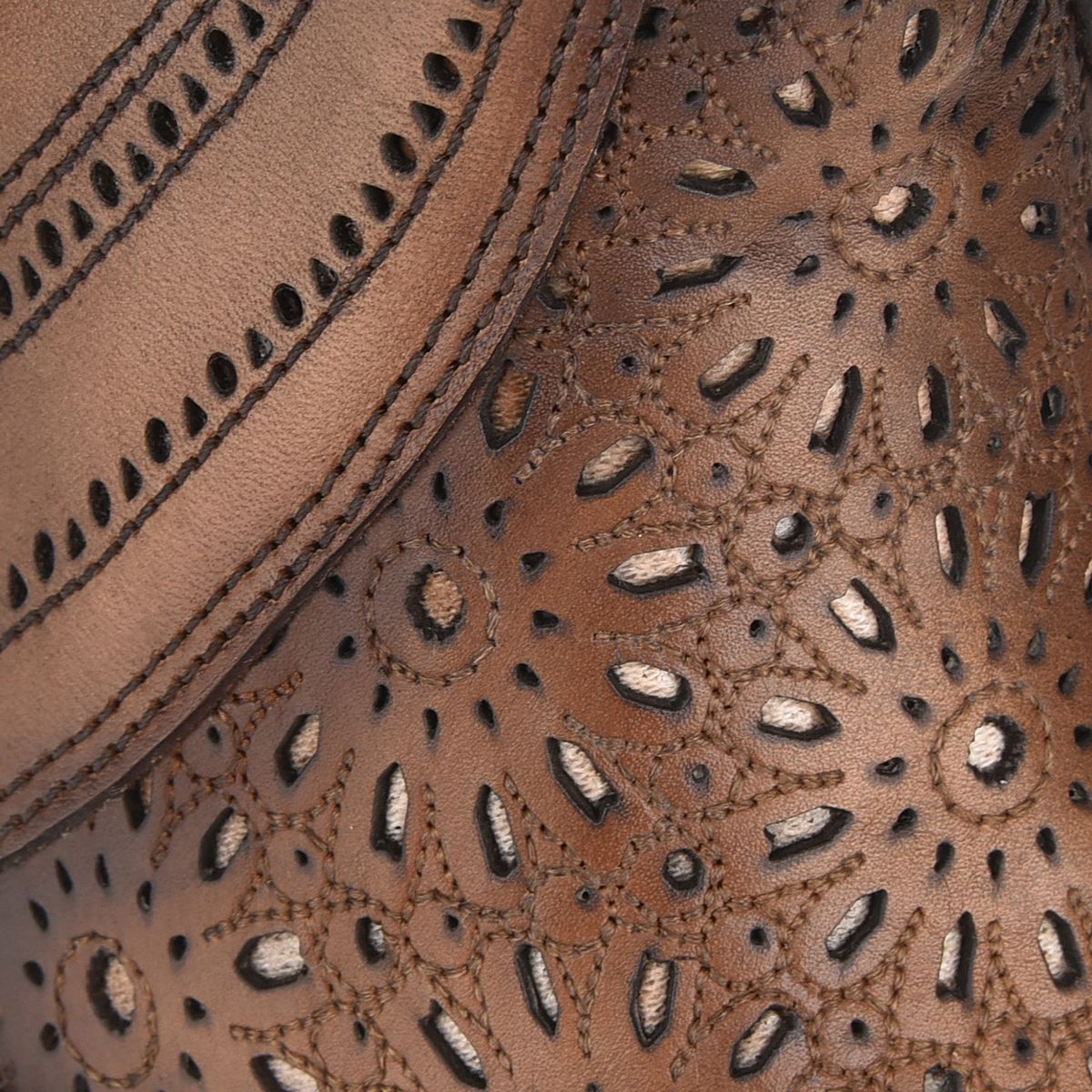 Botines para mujer en piel de vacuno. Presentan perforaciones con motivos orgánicos en la parte delantera y los laterales, con acabado pintado a mano. Tubo con elástico en la parte trasera y cierre interno para un mejor ajuste. Suela de piel con injerto de TPU.