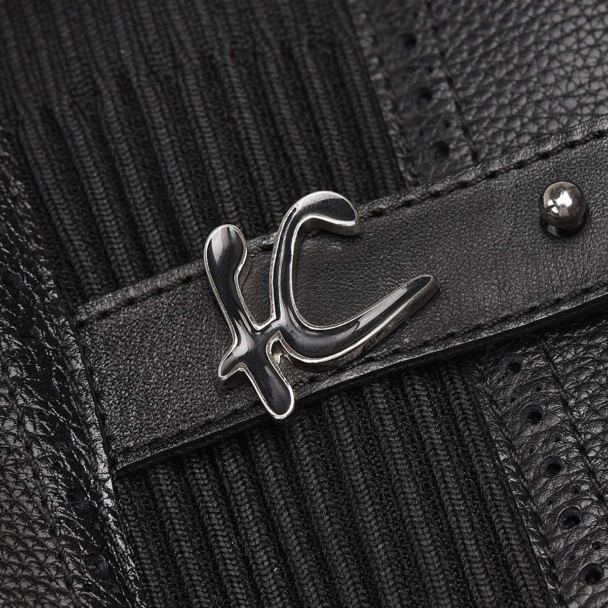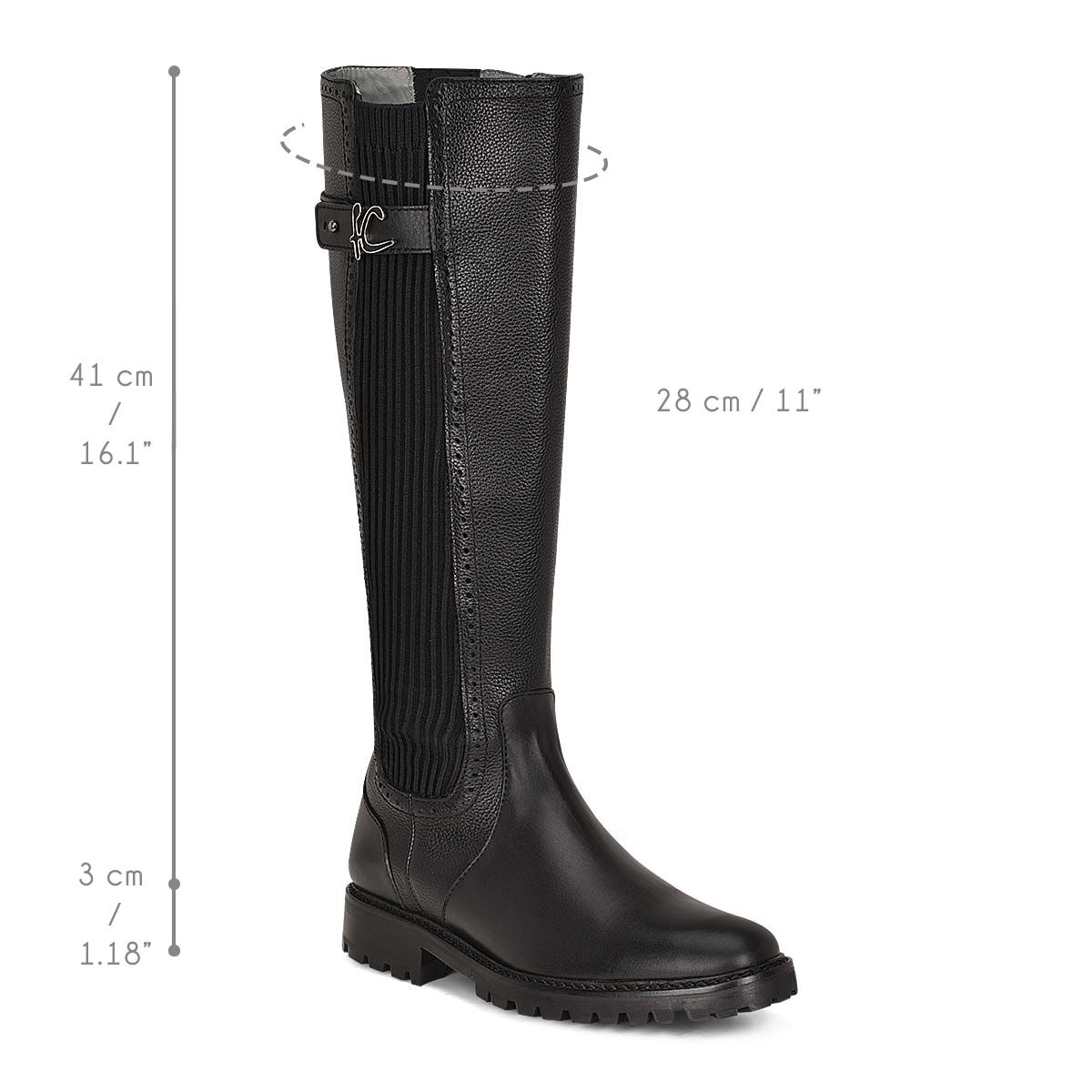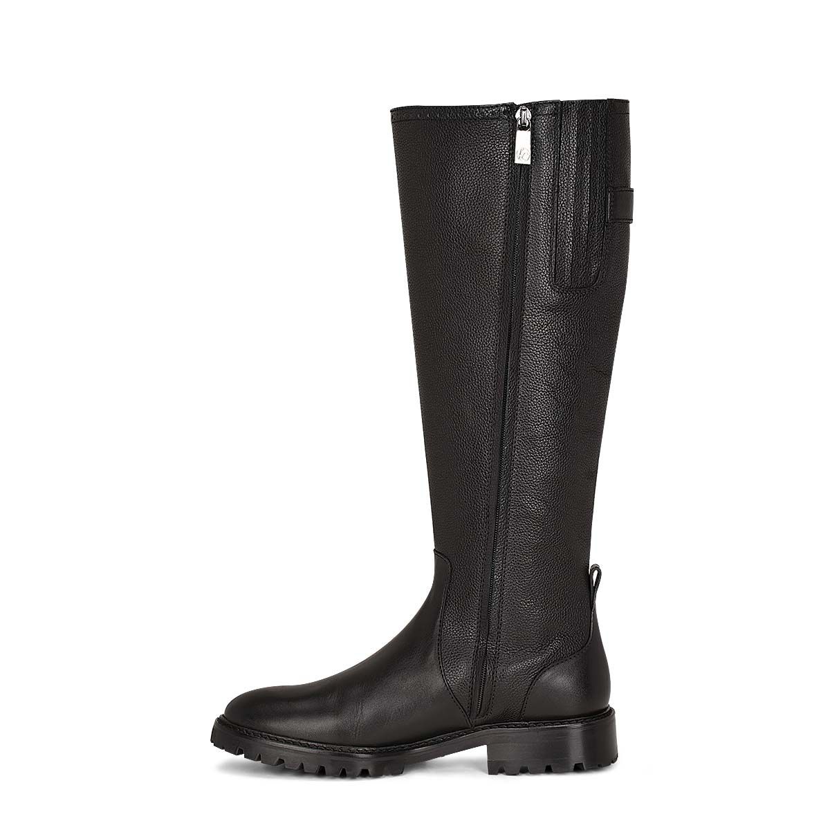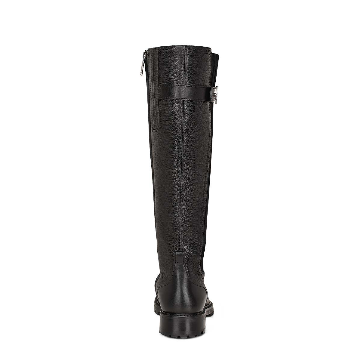 Bota alta para mujer en piel de vacuno. Presenta detalles con texturas en contraste, detalles de brocado, una aplicación metálica del monograma Franco Cuadra y una diadema decorativa en la parte trasera con cierre de herrajes. Con cierre interior y plantilla elástica para un mejor ajuste. Suela de goma.