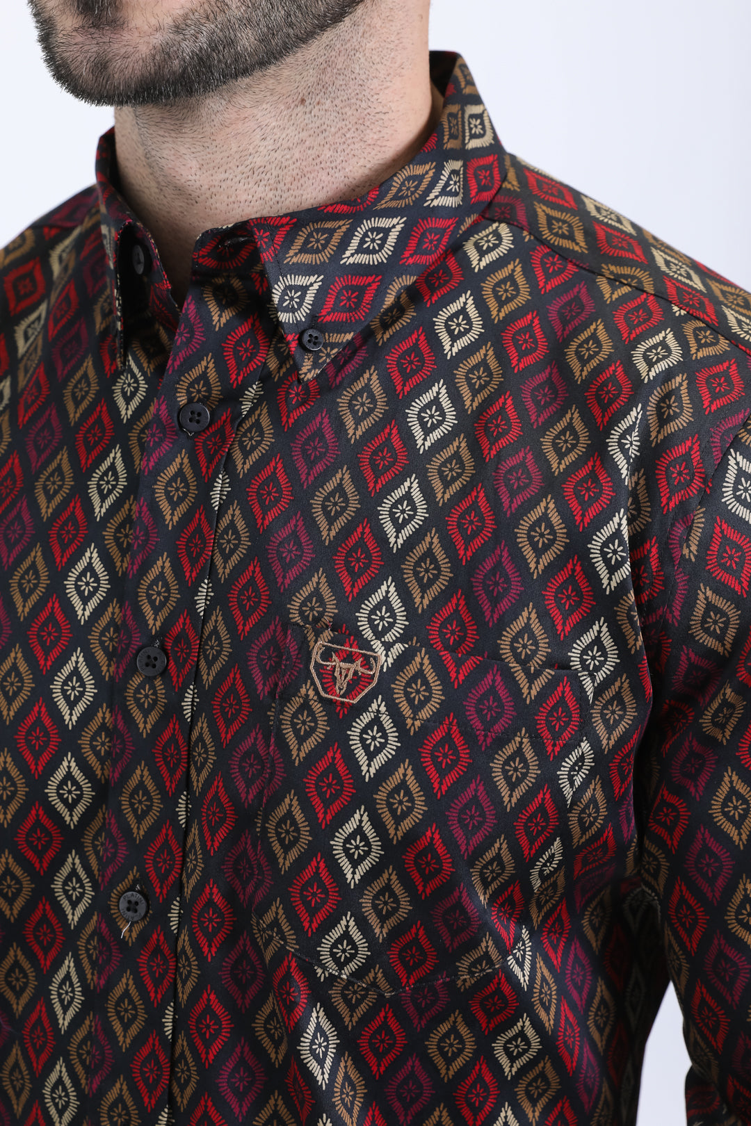 Camisa Platini de algodón satinado de manga larga negra para hombre (CWL10753 Negro)
