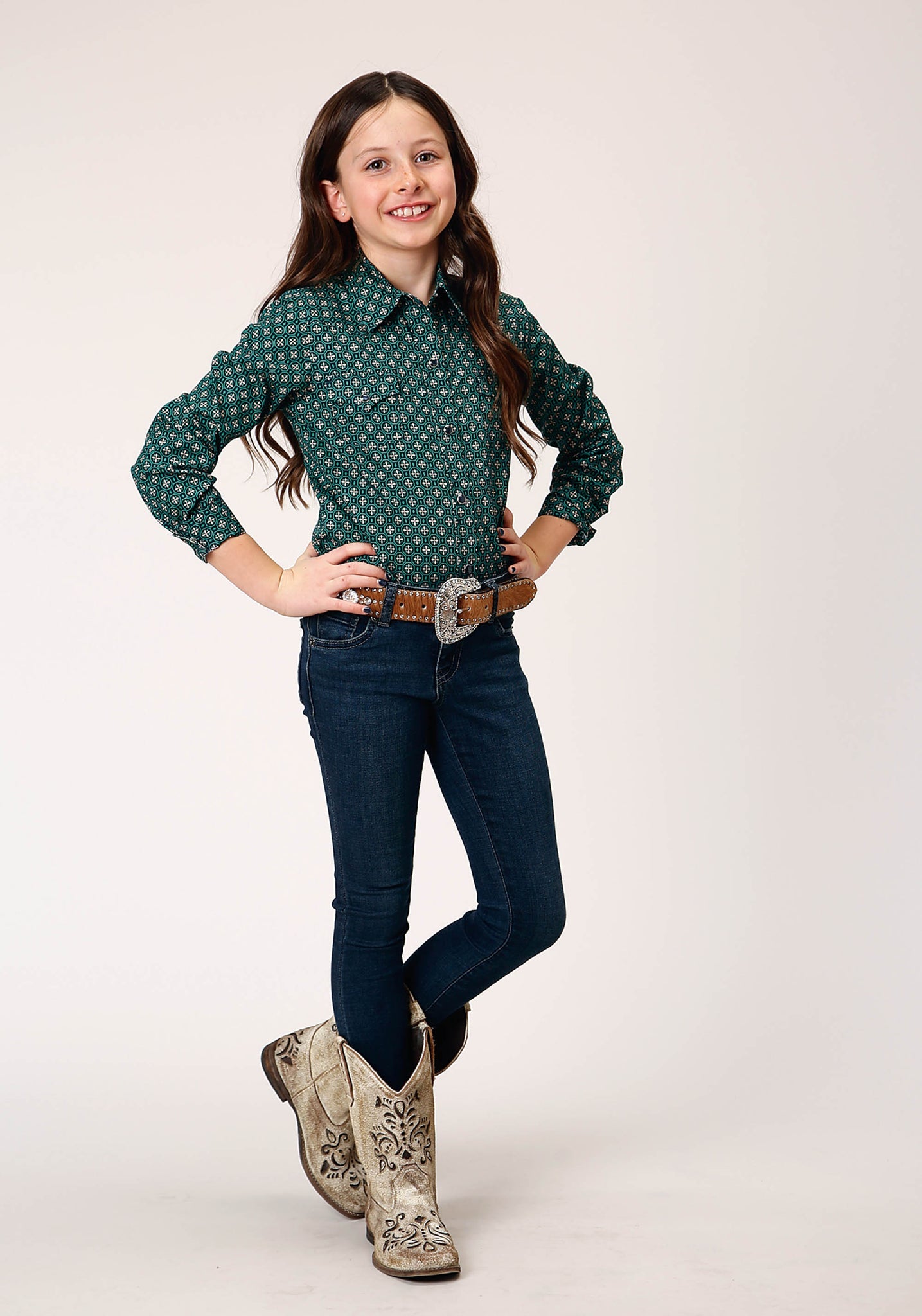 Camisa vaquera Roper de manga larga con cierre a presión y mangas cortas para niña (03-080-0225-1001 BU)