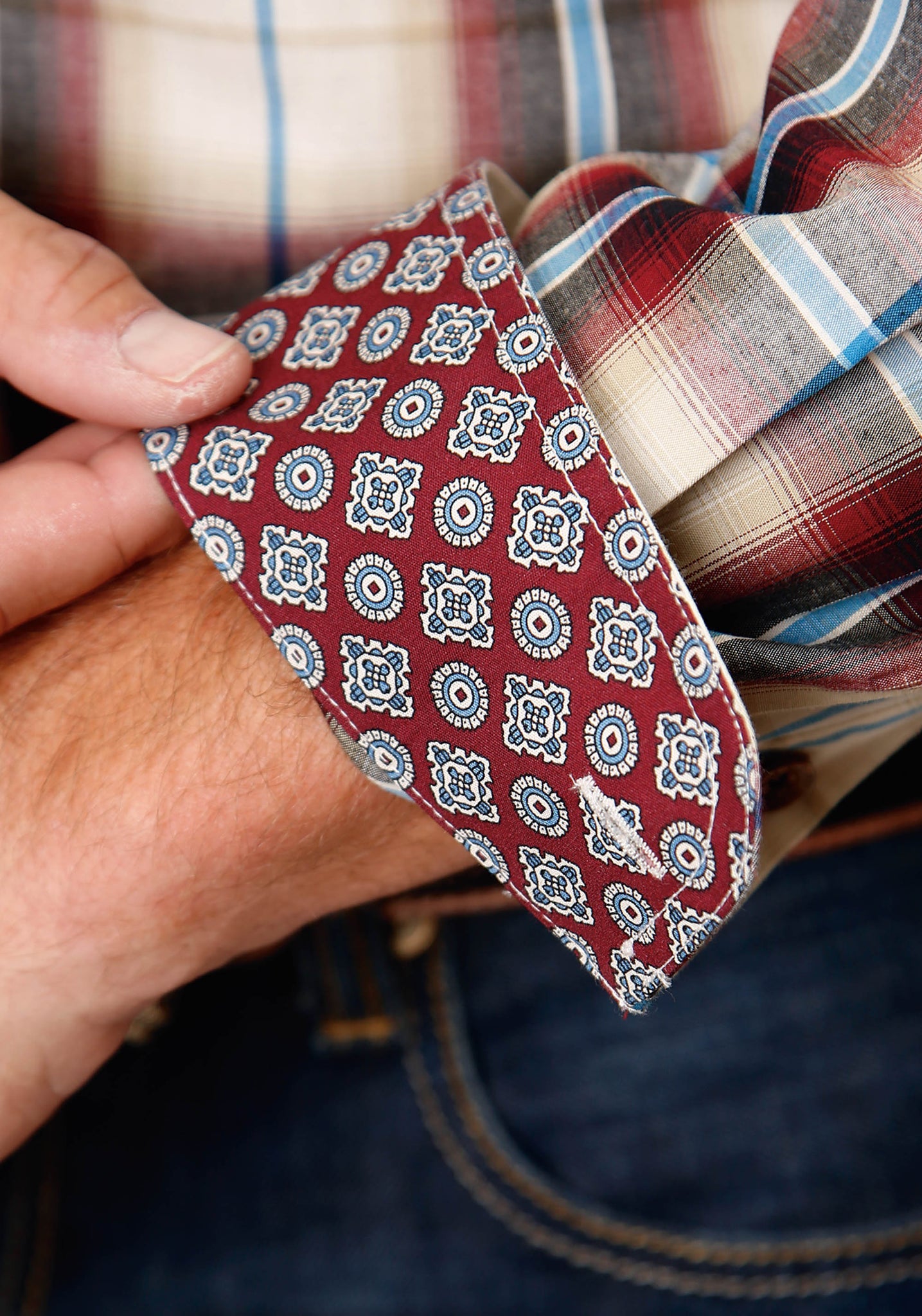 Camisa vaquera Roper de manga larga con botones y cuadros rojos Canyon para hombre (03-001-0378-7032 RE)