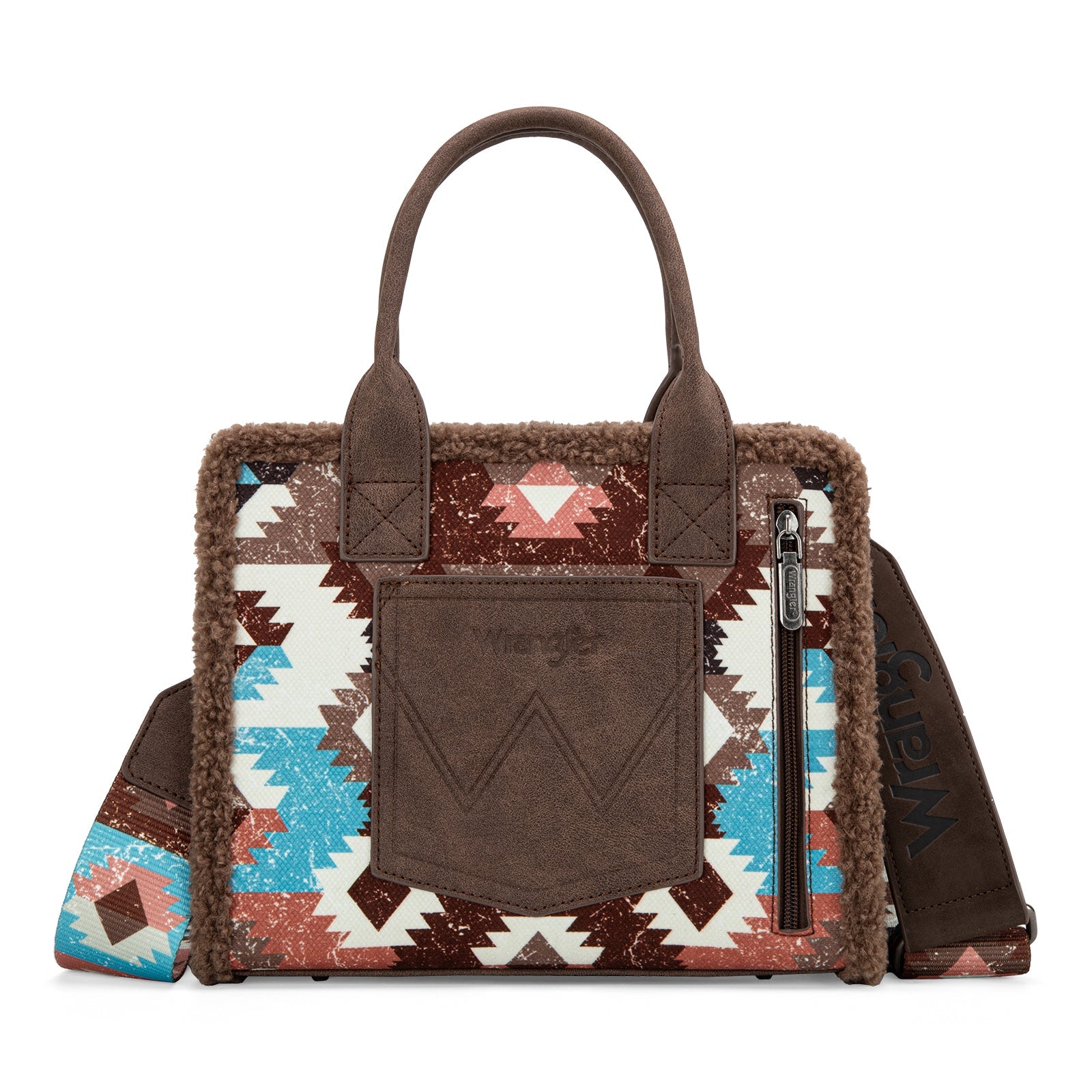Bolso bandolera pequeño de lona Wrangler Sherpa con estampado del suroeste (WG166-8120SCF / Café)