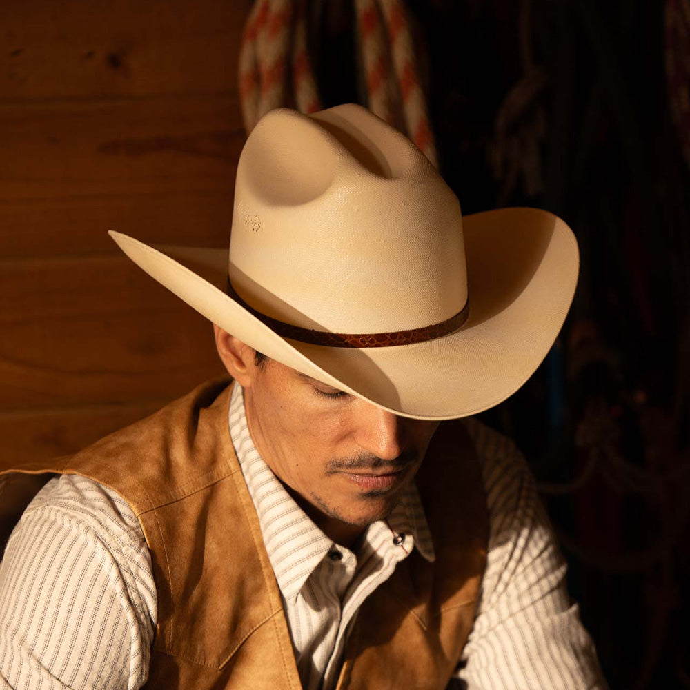 The 15X El Primero by Larry Mahan is truly one of a kind. With its classic cattleman crown and perfectly balanced 3 ½" or 4" brim, it keeps the sun off your face in effortless style. Lightweight and breathable, it’s built to keep you cool whether you’re out on the ranch or heading into town.