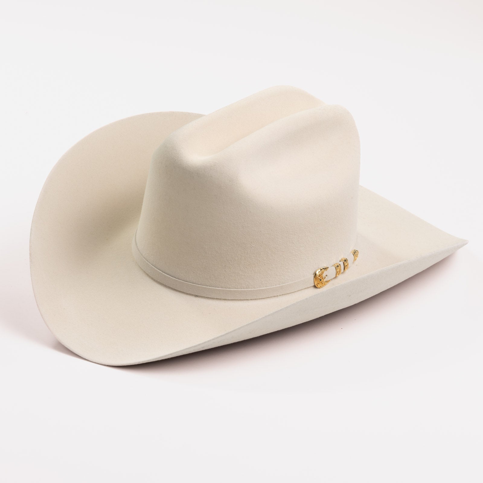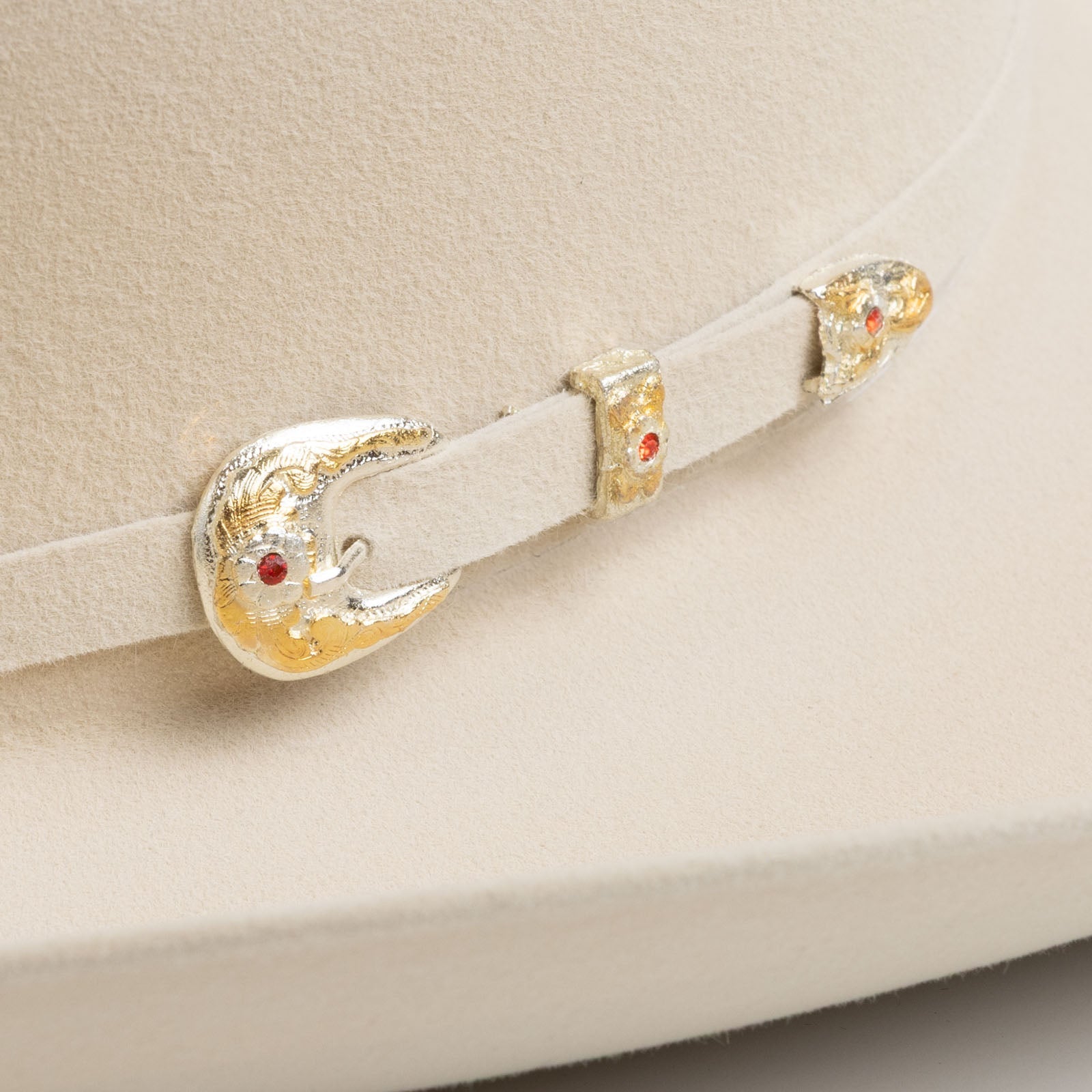 Constructed of the finest materials, the fur felt 6X Real western hat, by Larry Mahan, is known for it's soft, fur felt finish and superior fit. Trimmed with a 3 piece buckle set and individually packed ruby stones, this premium hat is the perfect topper for your next night out on the town.