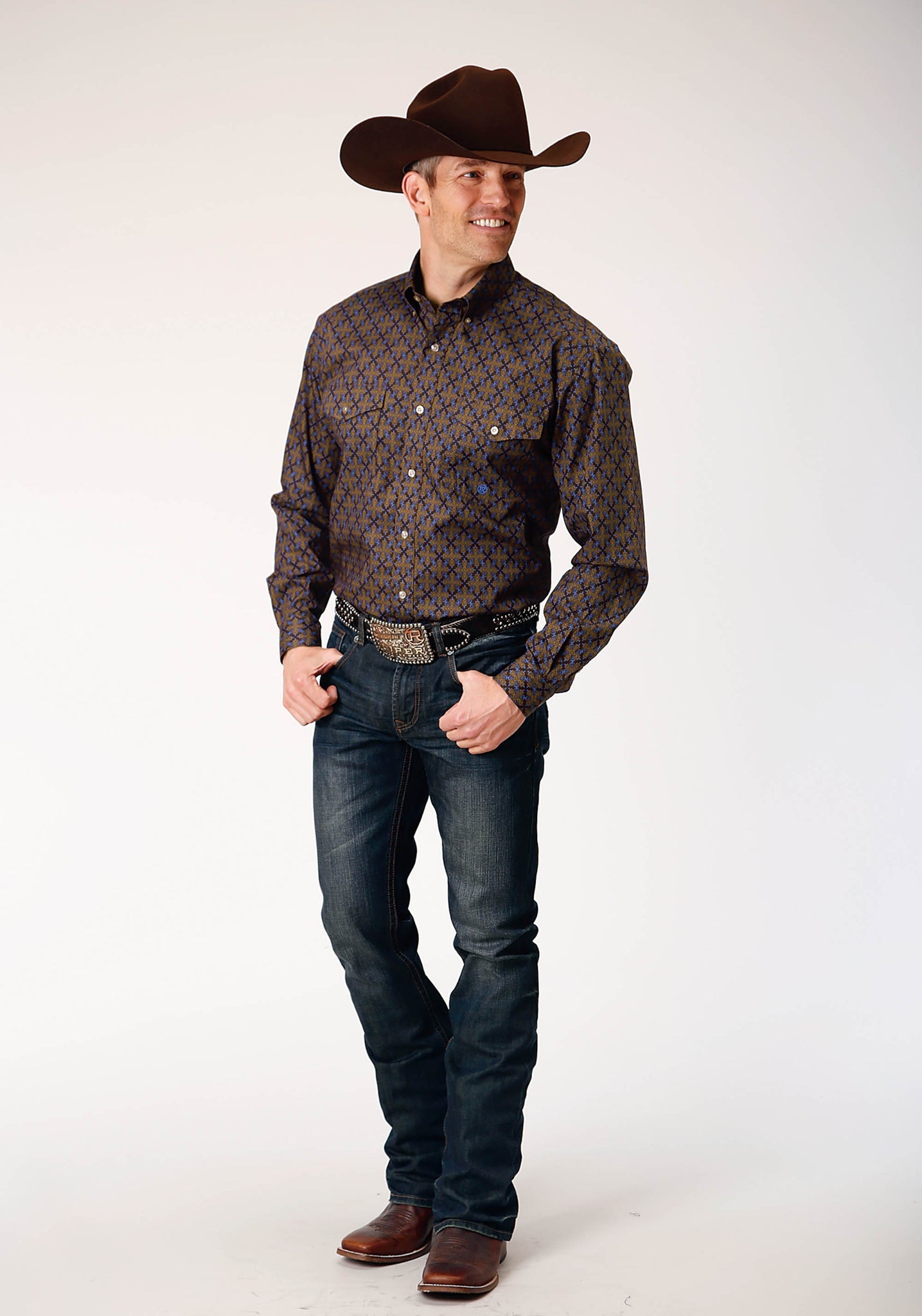 Roper Men's Long Sleeve Button Diamond Medallion Western Shirt (03-001-0325-1004 BR)