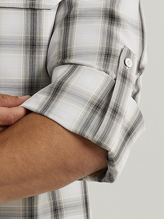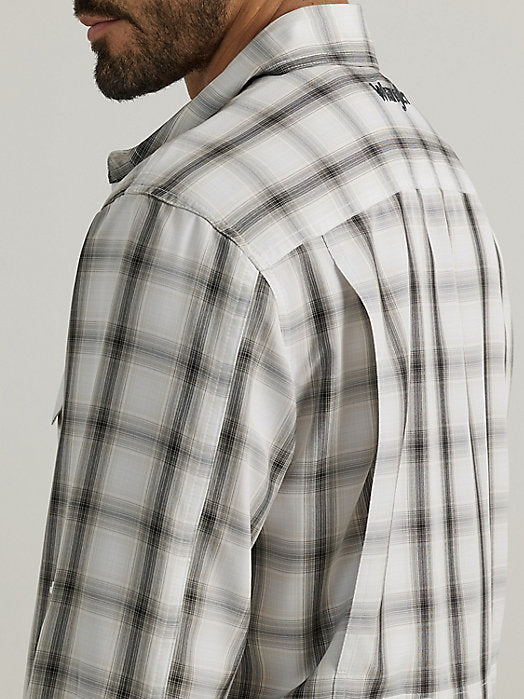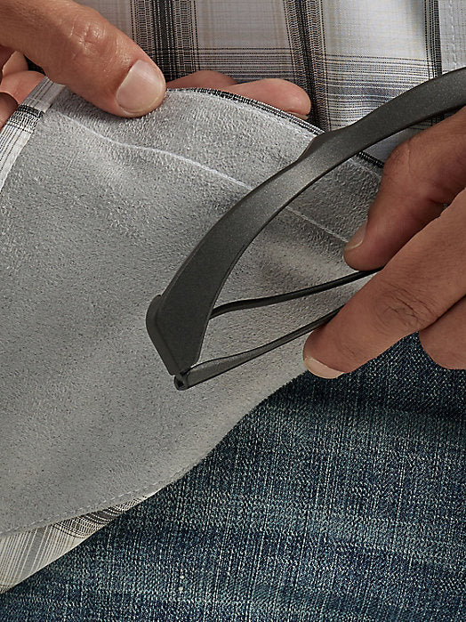 Comfortable and dependable, the Wrangler® performance long-sleeve plaid button-up is the perfect shirt for work, play, and everything in between. This classic fit shirt comes with a back vent, UV protection, and a moisture-wicking finish to keep you feeling cool and dry when the elements have different plans. Need space to store your essentials? Double chest pockets, a dedicated pencil slot, and a zippered Napoleon-style pocket have you covered. Plus, it features sleeve keepers for versatility and a glasses cleaner at the hem to keep you smudge-free. Try this classic plaid shirt with your favorite pair of Wrangler jeans to take on the day in style.